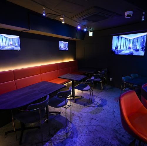 【2F:貸切パーティーやイベント利用に最適】1階とは雰囲気の異なる2階フロアは、個室としてもご利用いただけます。カラオケやモニター、DJ機材などの設備も充実しているので、貸切でのご宴会やパーティーにもぴったり。プランや人数、時間など柔軟に対応いたしますので、ぜひお気軽にお問合せください。